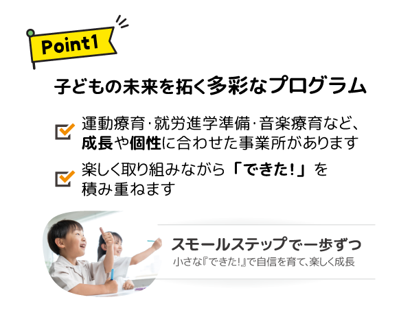 「できた!」という体験を大切にしながら、自信や社会性を育み、心と体の成長、そして将来に向けた力を伸ばせるようサポートしています。