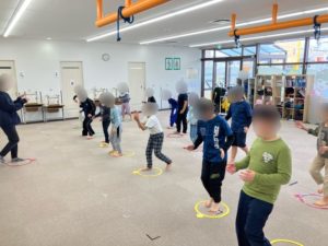 音楽療育(リトミック・歌唱・ダンス等)を通して、表現力や感受性、こころと体、そして言葉の発達を支援します。