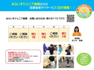 みらいずカレッジ 来週の空き情報です。 お気