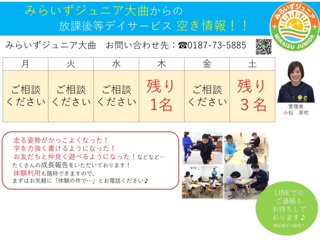 みらいずジュニア 〒014-0057 秋田県大仙市大曲船場町2丁目1番2号
