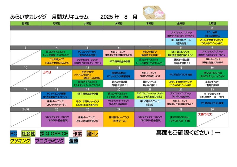8月のカリキュラム☆