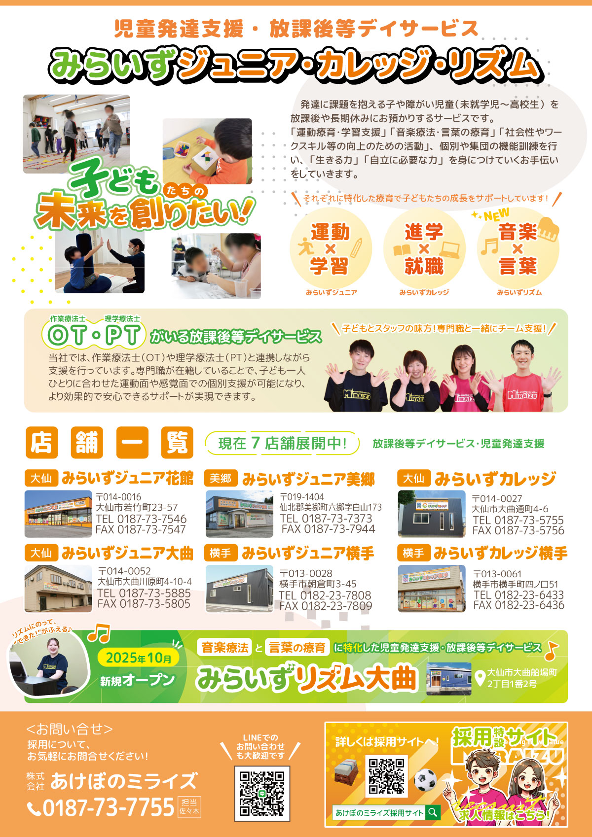 大仙市や横手市で放課後等で運動学習型と就職進学型で子どもたちの療育のお手伝いをしております