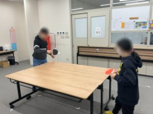 運動活動の一環で卓球に取り組んでいる様子です