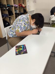 活動の時間でスクラッチアートに挑戦した様子を